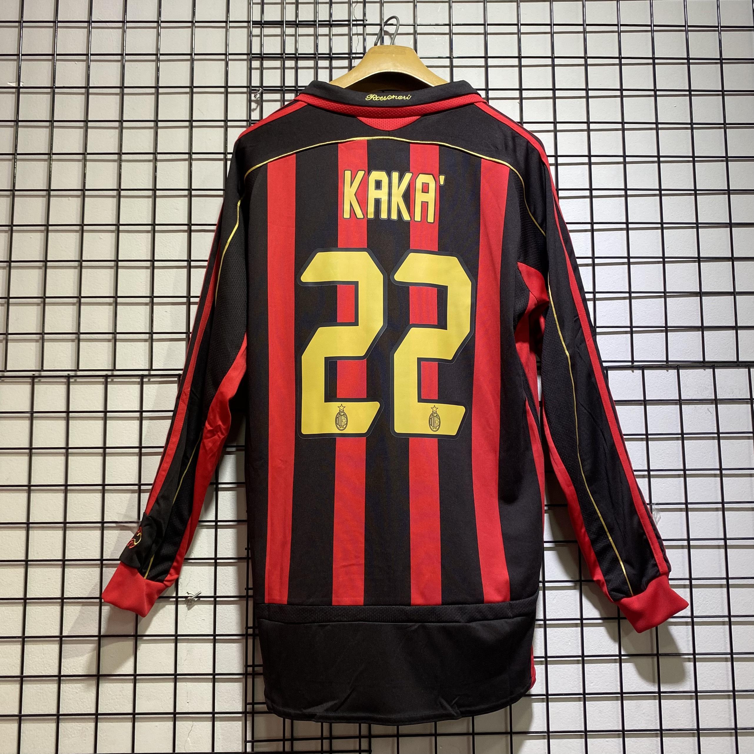 Áo bóng đá retro AC Milan 2006 đỏ đen dài tay In KaKa-22 vải Cotton Polyester nguyên tem