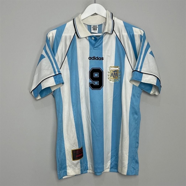 Áo bóng đá retro Argentina 1996 trắng xanh In Batistuta-9 vải Cotton Polyester nguyên tem